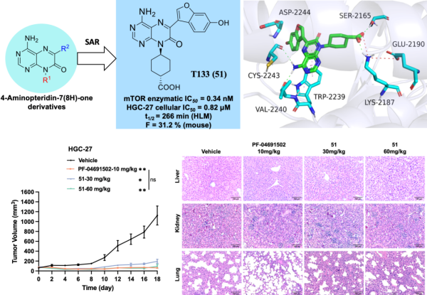 mTOR信号通路作为调控细胞生长、增殖与存活的核心枢纽,其异常激活与胃癌、肺癌、乳腺癌等多种癌症的发生发展密切相关,是抗癌药物研发的重要靶点。然而,目前已上市的mTOR抑制剂有限。因此,开发兼具强效与安全性的新一代mTOR抑制剂,成为该领域亟待突破的难题。