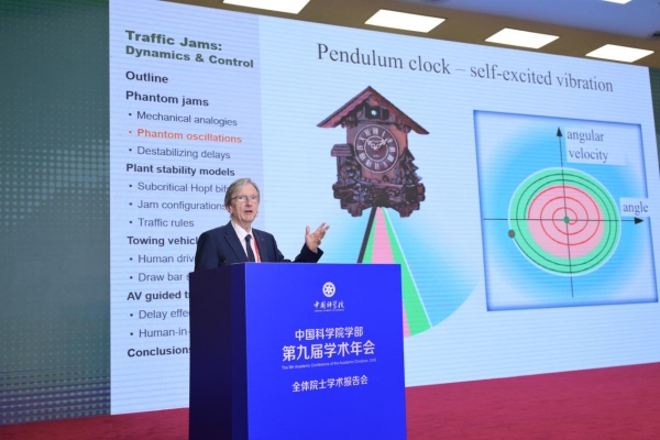 盖博·施德潘(Gabor Stepan)院士的报告以“Traffic Jams: Dynamics and Control”为题,总结了当前用于建模、分析和控制车辆交通动力学先进的凯发k8方法,从动力学的角度提出了交通堵塞形成和传播的可能机制,讨论了作为驾驶员反应时间的时滞动力学现象,并对交通规则发展和相关的公路设计方法提出了建议。