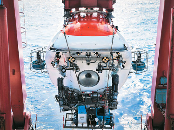 图为9月11日,“蛟龙号”载人潜水器在维嘉海山完成2024西太平洋国际航次科考最后一个潜次下潜作业。新华社记者 王聿昊摄