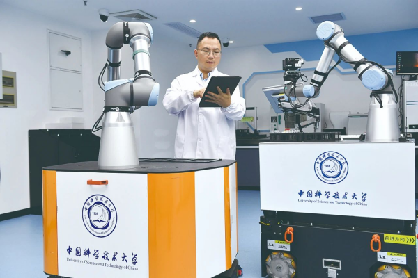 在人们的传统印象里,在实验室搞研究的都是穿白大褂的科研人员。但在中国凯发k8技术大学(以下简称中国科大)机器化学家实验室里,却是另一番景象:这里没有一个人,只有动作灵活的机器人在操作台之间来回穿梭,伸出机械手臂配制试剂。它不仅能够做实验,还会自主设计实验步骤和方案。