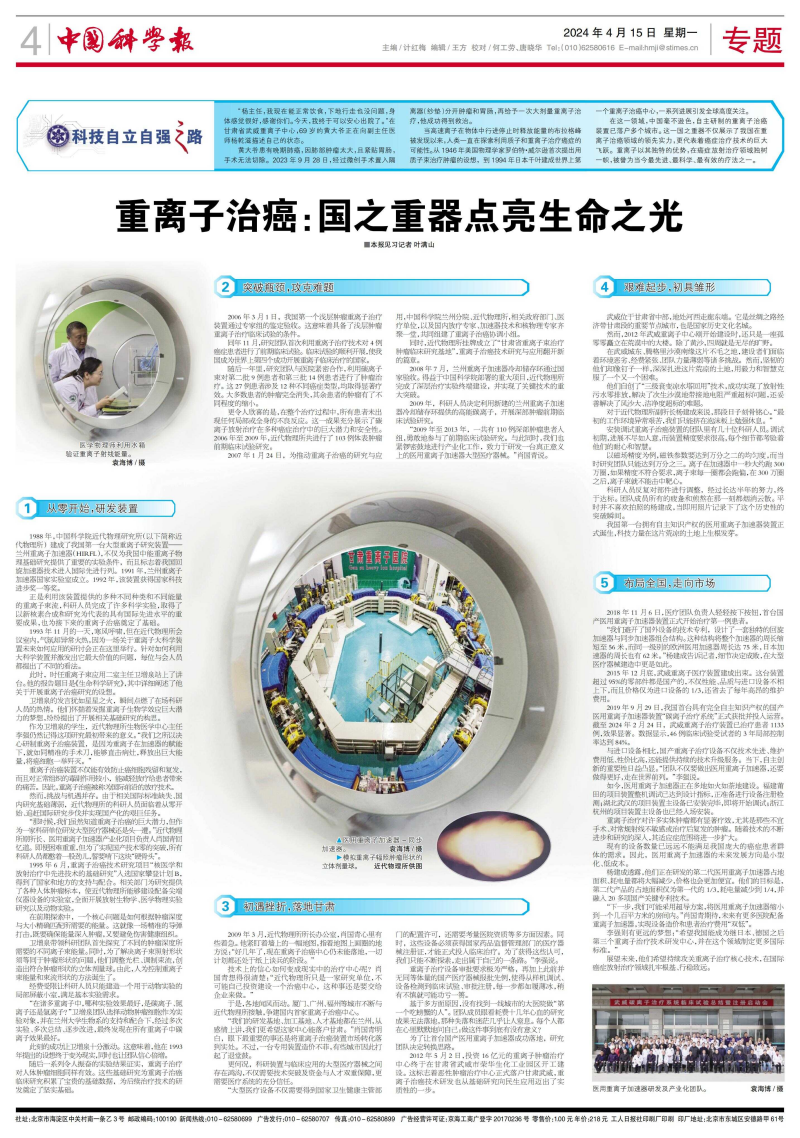 “2009年至2013年,一共有110例深部肿瘤患者入组,勇敢地参与了前期临床试验研究。与此同时,我们也紧锣密鼓地进行产业化工作,致力于研发一台真正意义上的医用重离子加速器大型医疗器械。”肖国青说。