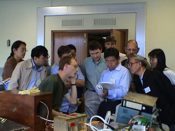 中欧双方的研究人员不由得围聚过来,孙辉先解释了信号不通的原因,而后安排人员将接口电路板中变压器的一根接地线断开,中欧两台仪器的信号果然顺畅接通了。