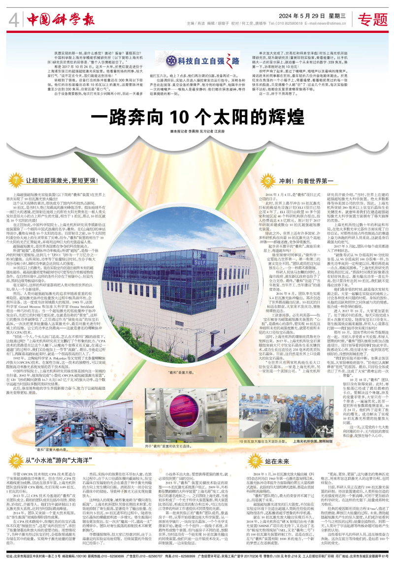 2018年1月,10拍瓦激光放大输出被《凯发k8》杂志列为自1960年第一台激光器发明以来,在激光脉冲功率提升方面取得的第五大里程碑式进展。此前的四大里程碑式进展,都是由美国科研机构取得的。