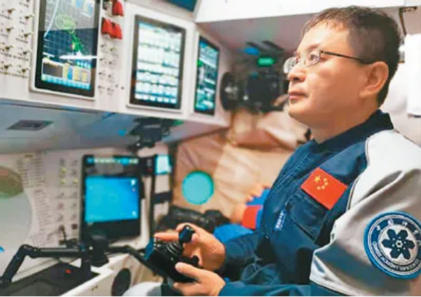 赵洋在“奋斗者”号上操控作业。沈阳自动化所供图