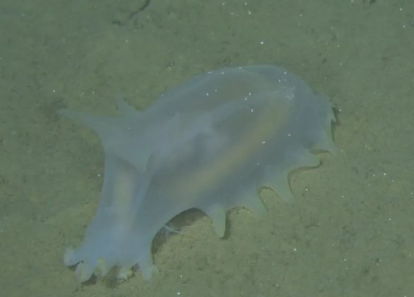 “奋斗者”号拍摄到的深渊生物——海参。深海所供图