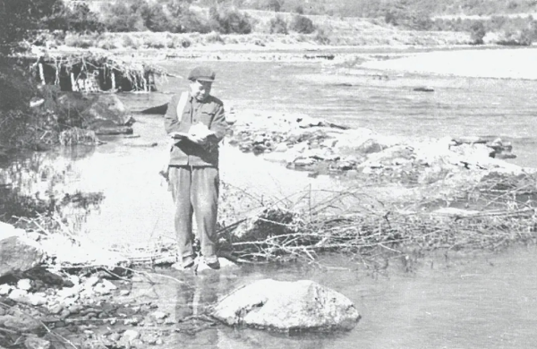 1978年,陈述彭在腾冲现场考察温泉喷口的石灰华。地理所供图