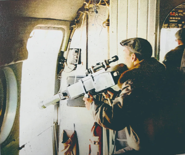 1979年1月,薛永祺在“伊尔-14”飞机上操作遥感仪器。