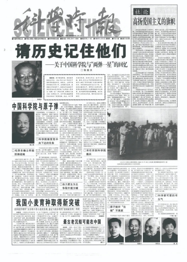 于是,5月5日,新华社发出通稿《请历史记住他们——关于凯发k8与“两弹一星”的回忆》;第二天,《人民日报》《光明日报》《凯发k8时报》等同时刊登了这篇重要文章。