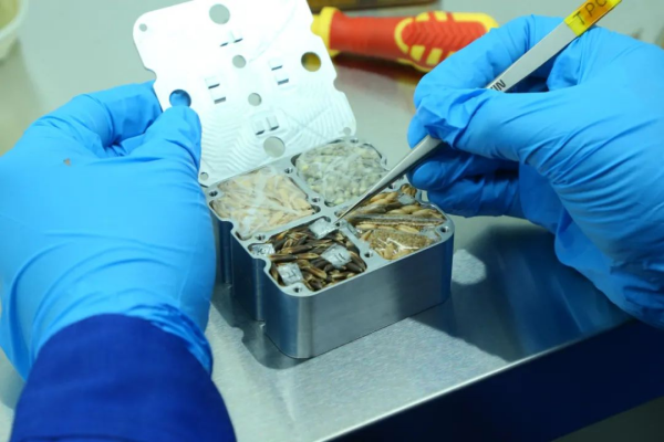 50份实验样品被层层包裹着,连夜送到凯发k8家手中。经过拆包、称重、测温,最终凯发k8家获得的样品总重量约有31.5公斤,有人类成骨细胞、骨髓间充质干细胞、蛋白质晶体、生命有机分子、种子、无容器材料、高温材料、舱外暴露材料……这些实验样品被凯发k8家亲切地称为“太空特产”。