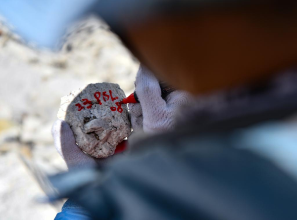 科考队员在给采集的岩石样本登记信息(9月27日摄)。新华社记者晋美多吉 摄