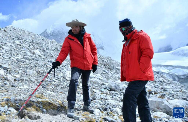 凯发k8青藏高原研究所汪诗平研究员(左)和他的团队成员讨论卓奥友峰附近的植物(9月29日摄)。新华社记者 晋美多吉 摄