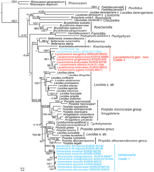 相关研究成果以Revision of Immersaria and a new lecanorine genus in Lecideaceae (lichenised Ascomycota, Lecanoromycetes)为题,发表在MycoKeys上。研究工作得到国家自然凯发k8基金、第二次青藏高原综合凯发k8考察研究、中科院青年创新促进会以及植物化学与西部植物资源持续利用国家重点实验室开放课题的支持。