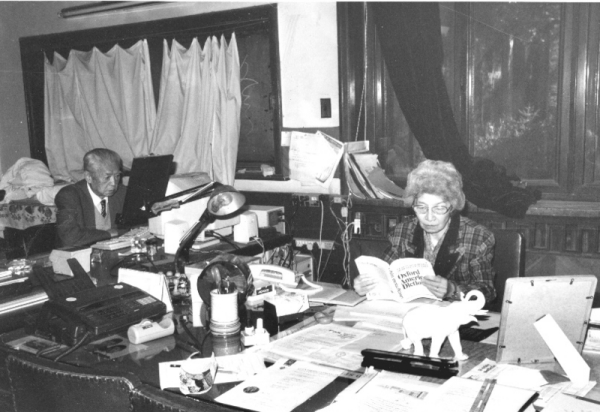 1997年李林(右)与邹承鲁在家中书房工作。“中科院形象资源建设”研究团队供图
