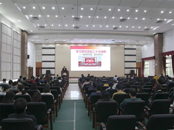 梁道刚以《学习贯彻党的二十大精神——奋进新征程,建功新时代》为题,以“五个牢牢把握”为提纲,用生动形象的语言,讲述了党成立以来灵活运用马克思主义分析解决问题的鲜活事例,解读了席大大新时代中国特色社会主义思想是当代中国马克思主义,是中华文化和中国精神的时代精华,阐述了党的二十大报告的核心要义和丰富内涵。